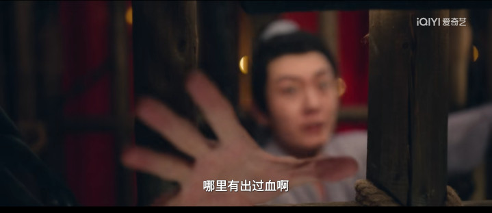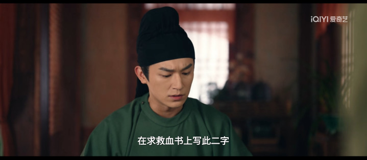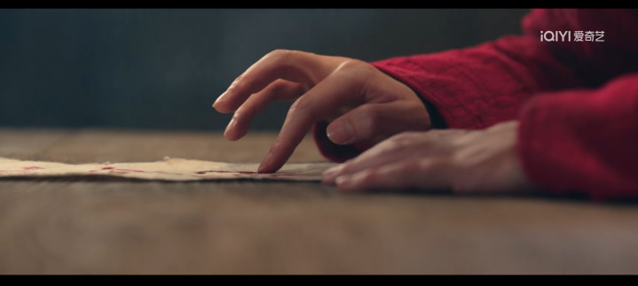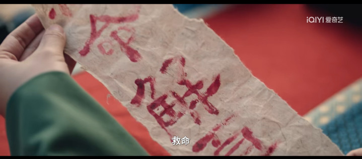 阴暗牢房内,一红衣须眉,正咬破手指,折腰写一封求救书信,须眉看上去颜色慌乱,充满畏怯。