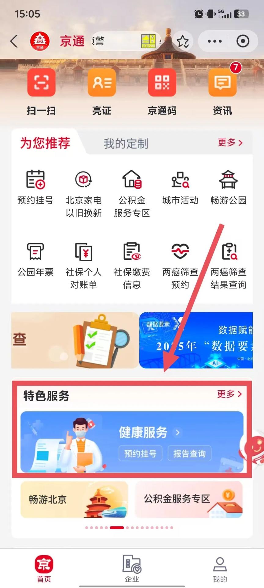 1. 微信、支付宝搜索“京通”小表率,干涉“健康处事”板块;
