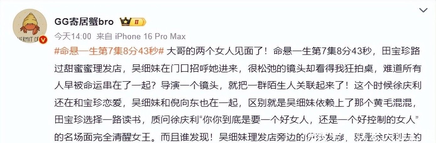 2025年10月14日凌晨,微博热搜榜被一个奥妙词条斯须占据——#命悬一世第7集8分43秒#。