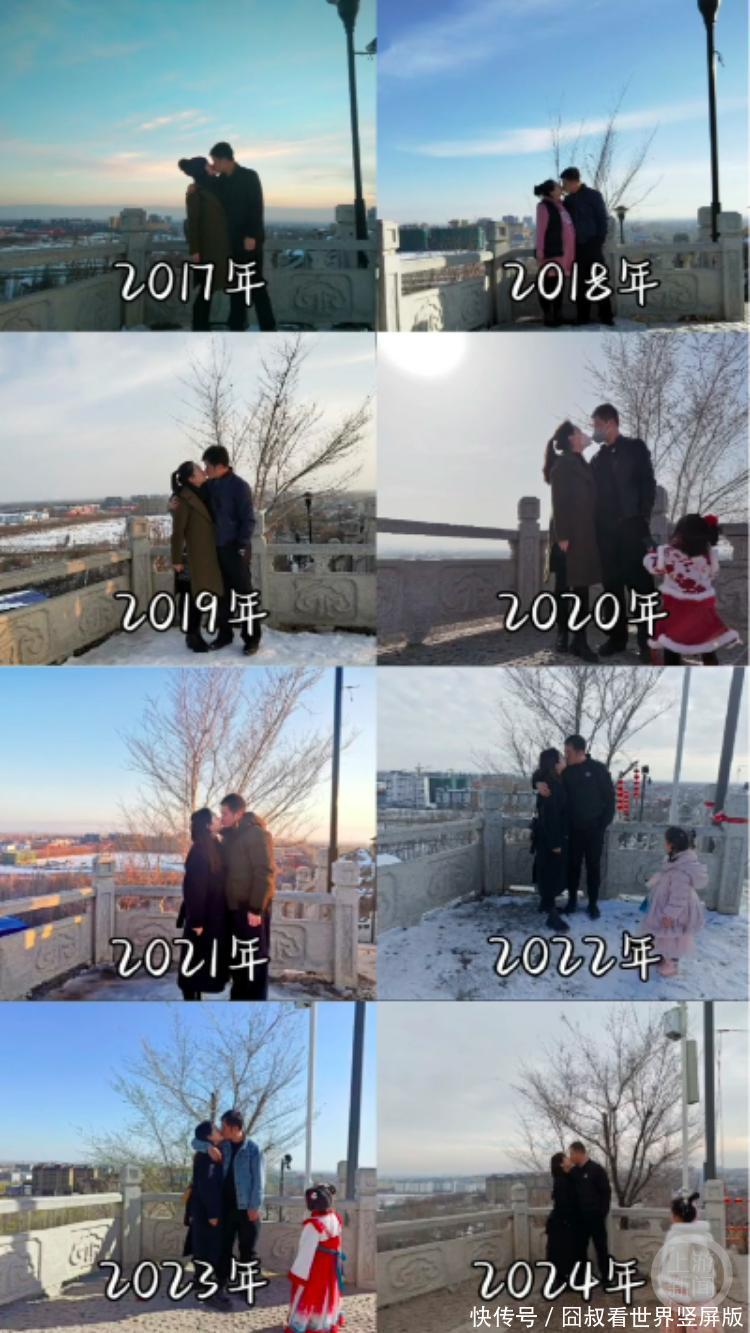 2017-2024年,两东说念主在霍城北山坡不雅景台上,留住了八张受室挂念照。本年2月5日,又一个受室挂念日,常何蕊把八载光阴压进一段视频,并写下上头这段话。