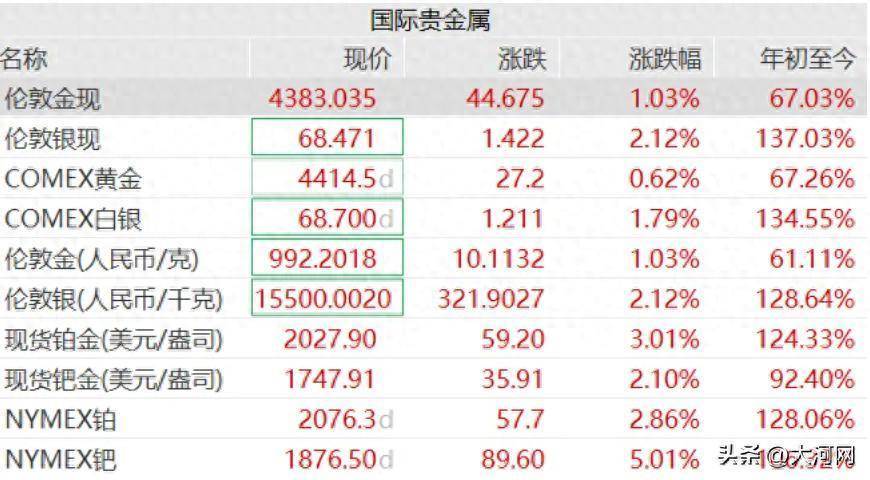 现货铂金抓续走高,现涨超3%,报2002.3好意思元/盎司,为自2008年以来初次升破2000好意思元/盎司,本年累涨超120%。